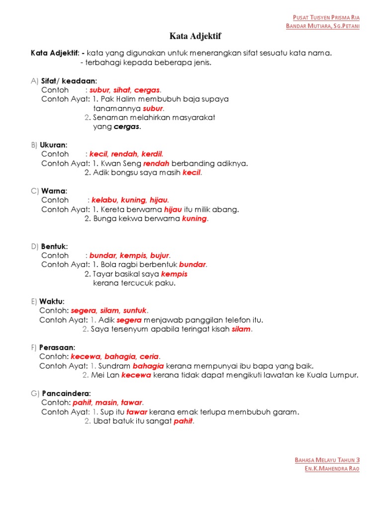 Berikut adalah beberapa contoh kalimat yang didalamnya terdapat adjective kata sifat. Halo dalam pelajaran ini kita akan melihat kata sifat bahasa Inggeris dan frasa adjektif bahasa Inggeris. Maksud dan Contoh Ayat K Latihan Nota.